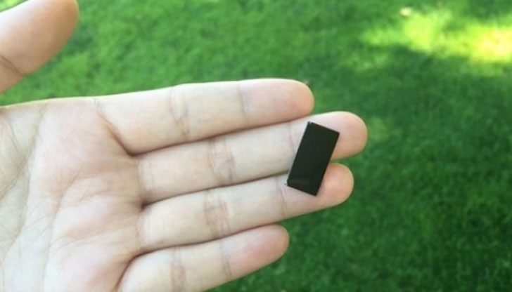 Това правоъгълниче с размер на половин пощенска марка представлява стъклена основа покрита с наночастици от молибденов дисулфат. Те са закрепени перпендикулярно на основата и краищата им стърчат нагоре, като всяко от тях е покрито с фин слой мед.