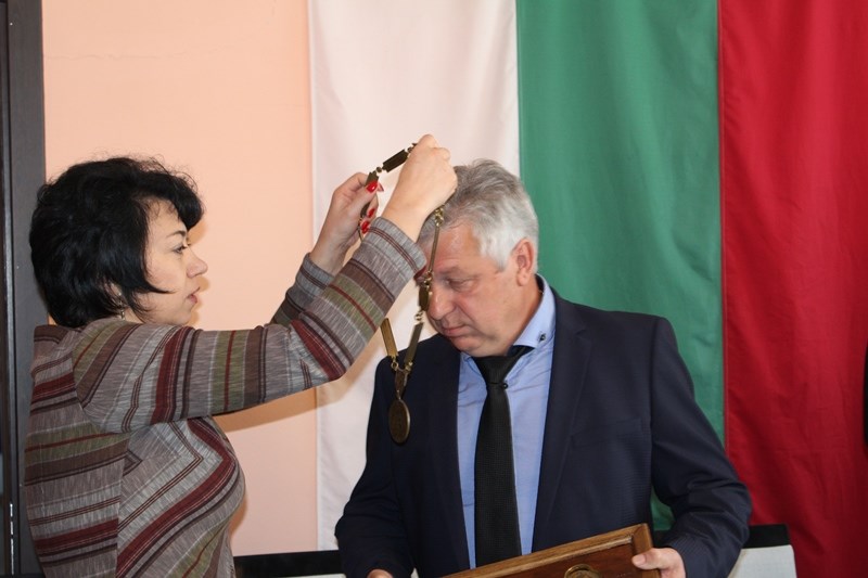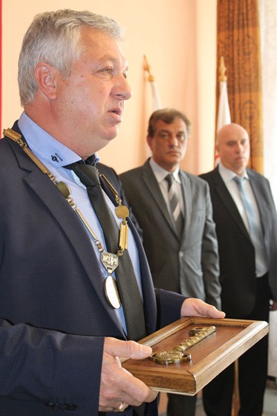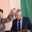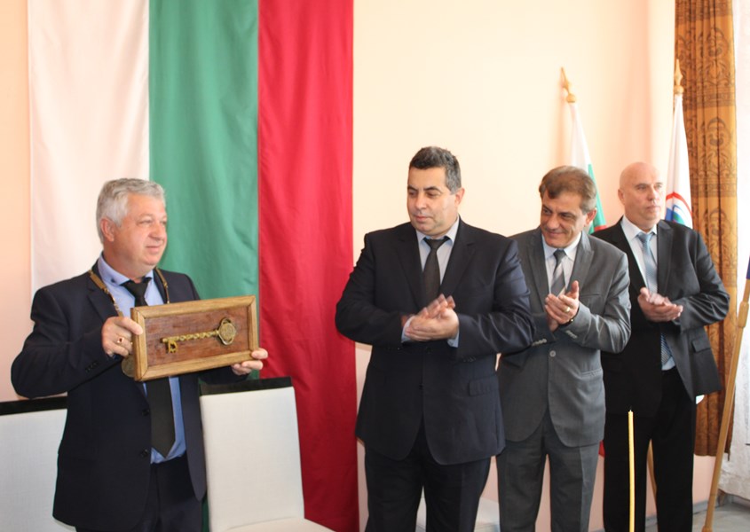 По време на днешното тържествено заседание временно изпълняващия длъжността кмет на общината Валерия Борисова предаде символите на местната власт на преизбрания кмет Валентин Панайотов.