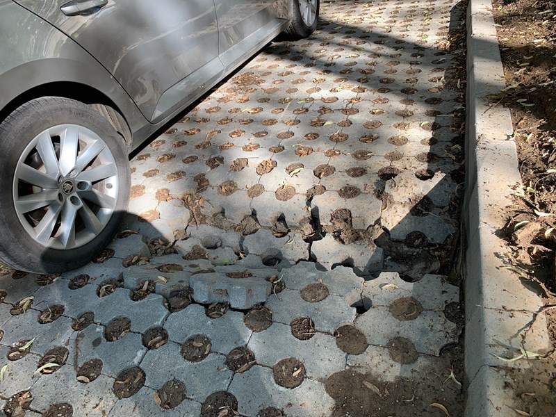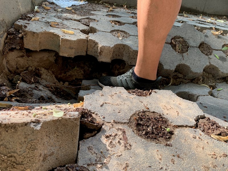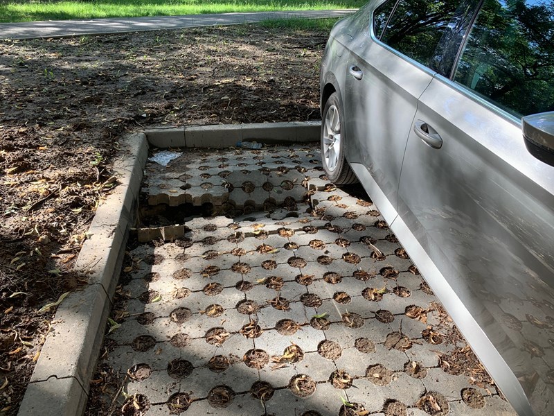 "Снимките са от "Алеи Възраждане", бл.Струмица! Това са новоизградените паркоместа. Качеството на целия ремонт на парка е меко казано ниско! Тези паркоместа само ги заравниха с един багер и толкова! Тепърва ще стават такива проблеми!", допълва гражданинът.