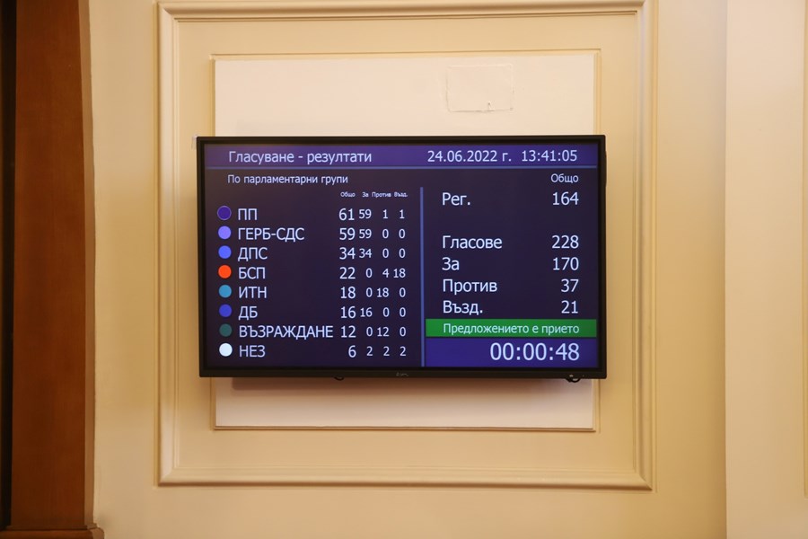 "За" гласуваха нечленуващите в група народни представители, "Продължаваме Промяната", ГЕРБ-СДС и "Демократична България" и ДПС.