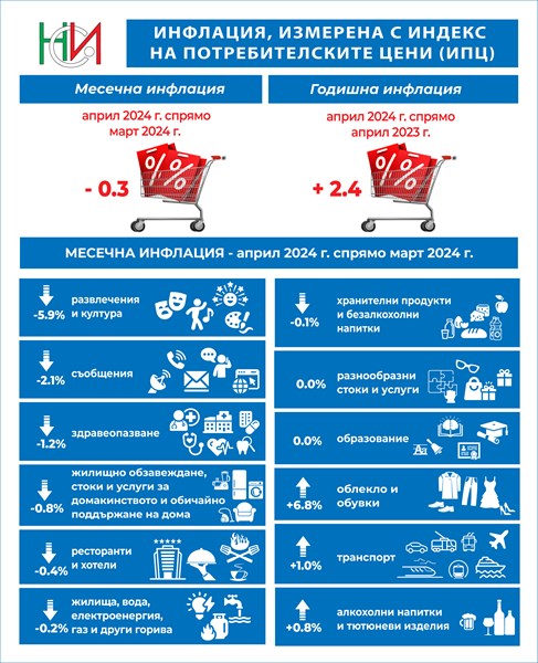 НСИ: Инфлацията се забавя до 2,4% през април 2024 година