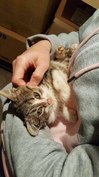 "През изминалата седмица тя успя да събере сили, за да може да ѝ се направи сложната за нейните 700 г операция на крачето. Благодарение на грижите и професионализма на прекрасни доктори вчера всичко мина успешно. Тя е малко бебе на около 2 месеца, изключително любвеобилна, гушлива, обича да меси и да мърка силно. След всичко, през което премина и след всичко, с което се сбори геройски, сега тя единствено иска да намери своите хора и да не стои затворена в клетка вече.