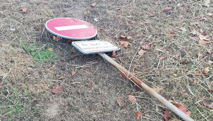 Няма кой да оправи паднал пътен знак в русенския квартал „Здравец“.