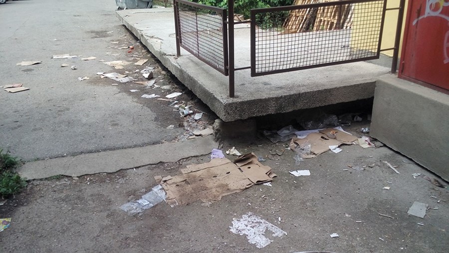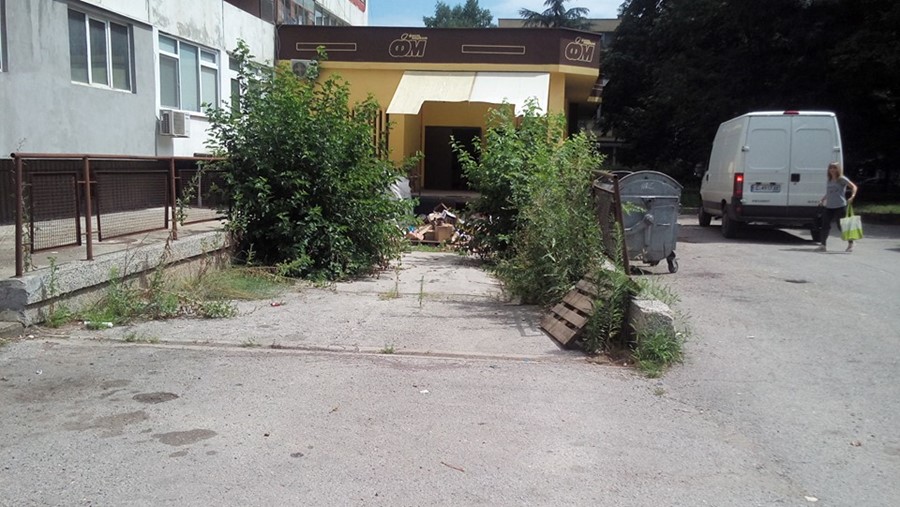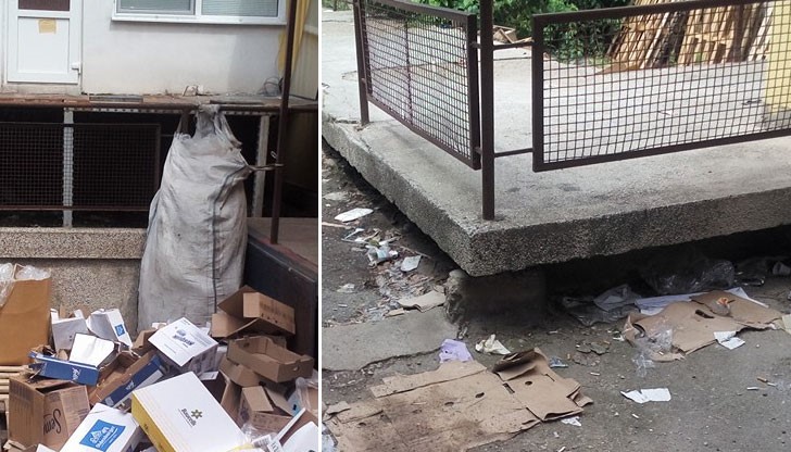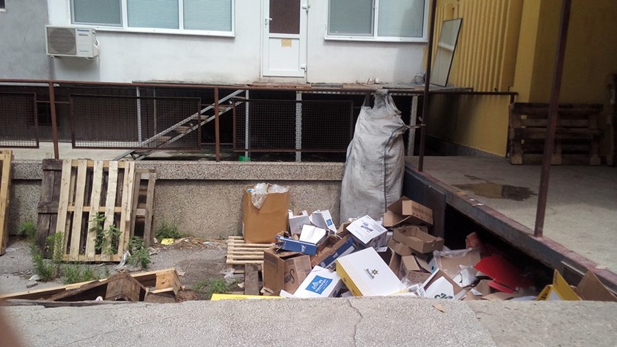 За съжаление това е постоянна гледка на магазина отвън. Не знам вътре в склада как е, но е хубаво санитарните органи да се поразмърдат, защото в най-скоро време ще се появят и гризачи.