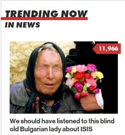 Един от най-популярните световни таблоиди – американският „Ню Йорк Пост“, публикува статия със заглавие „Трябваше да слушаме тази сляпа българска старица за ИДИЛ“. Както се досещате, става дума за пророчицата от Петрич, популярна като Баба Ванга.