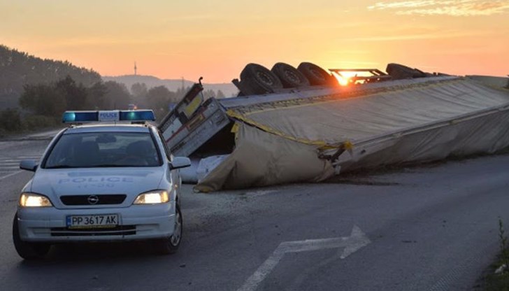 Обърнат ТИР блокира пътя Русе – Разград
