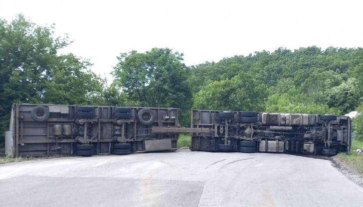 В участъка на пътния инцидент има разлив на гориво. Служители от Областното пътно управление ще опесъчат и приведат пътя в безопасност.