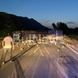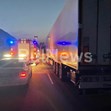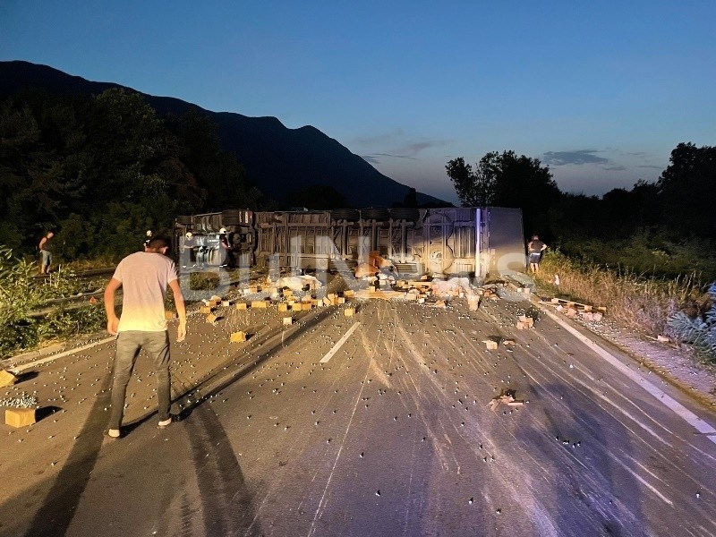 ТИР-ът е превозвал малки болтове, които са се разпилели по целия път и преминаването е невъзможно, тъй като могат да спукат гумите на движещите се автомобили.