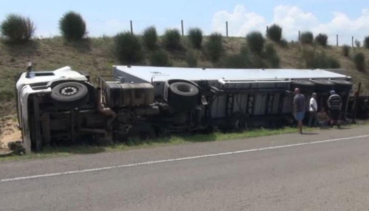 ТИР, натоварен с пшеница, се обърна и затвори за движение прохода "Боаза" край Търговище.