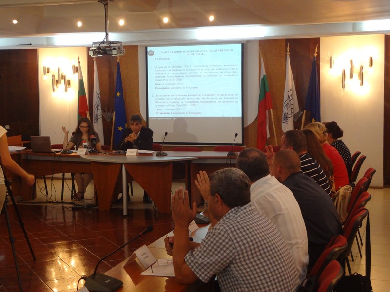 По първа точка от дневния ред беше прието решение – сектор пътна полиция на ОД на МВР – Русе, два пъти в годината ( на 6 месеца) да предоставя данни за състоянието на пътно – транспортните произшествия и пътния травматизъм, като тези данни 10 дни след получаването им ( за първото полугодие) и до месец Април ( за предходната цяла година) да бъдат оповестявани на интернет страницата на Областна администрация Русе.