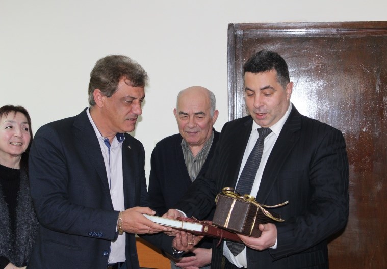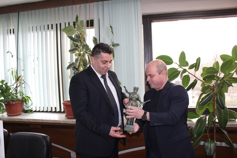Към пожеланията за здраве, щастие и успехи се включи и изпълнителният директор на Асоциация „Еврорегион Данубиус“ г-жа Лили Ганчева, която подари на рожденика нож за писма от двореца „Пелеш“ в Румъния.
