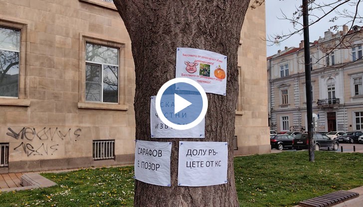 Импровизирано протестно табло се появи на едно от дърветата пред Съдебната палата в Русе. Плакати с послания срещу и.ф. главен прокурор Борислав Сарафов, в защита на Конституционния съд и с призиви за честни избори украсиха ствола на дървото, превръщайки го в необичаен символ на гражданското недоволство, съобщи Рус Медиа.