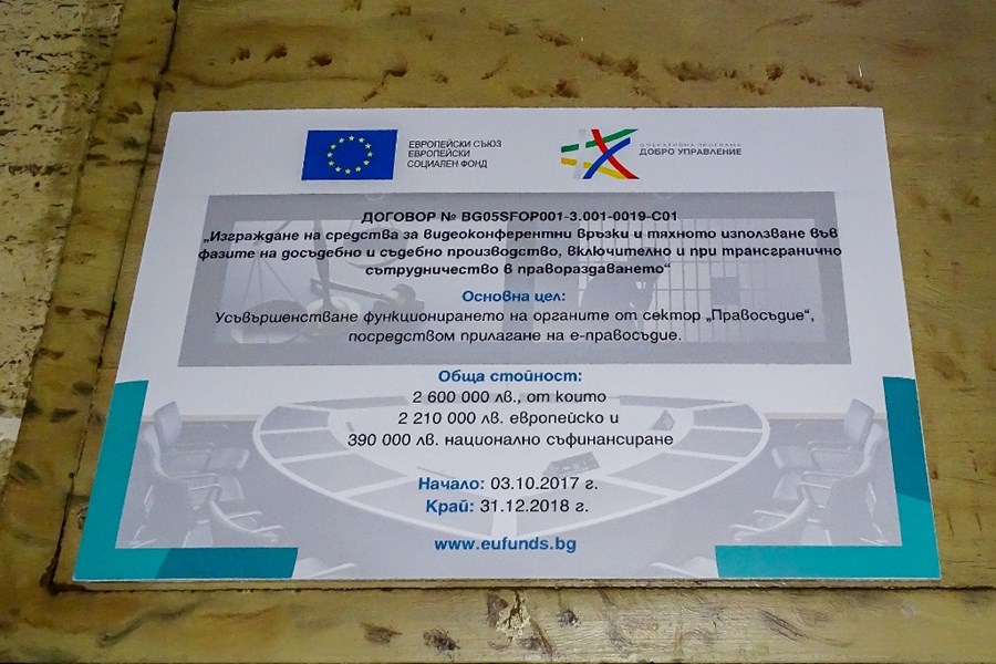 Министерството на правосъдието е бенефициент по проект BG05SFO001-3.001-„Изграждане на средства за видеоконферентни връзки и тяхното използване във фазите на досъдебното и съдебното производство, включително и при трансгранично сътрудничество в правораздаването“, финансиран по Оперативна програма "Добро управление".