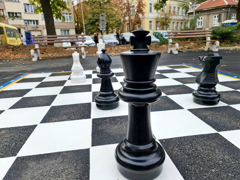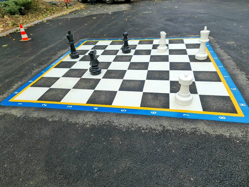 Различни активности предлагат асфалтовите стикери и на пл. „Доктор Мустаков“ /Американското пазарче/. На новоасфалтирания площад може да бъде изиграна и партия шах с истински фигури.