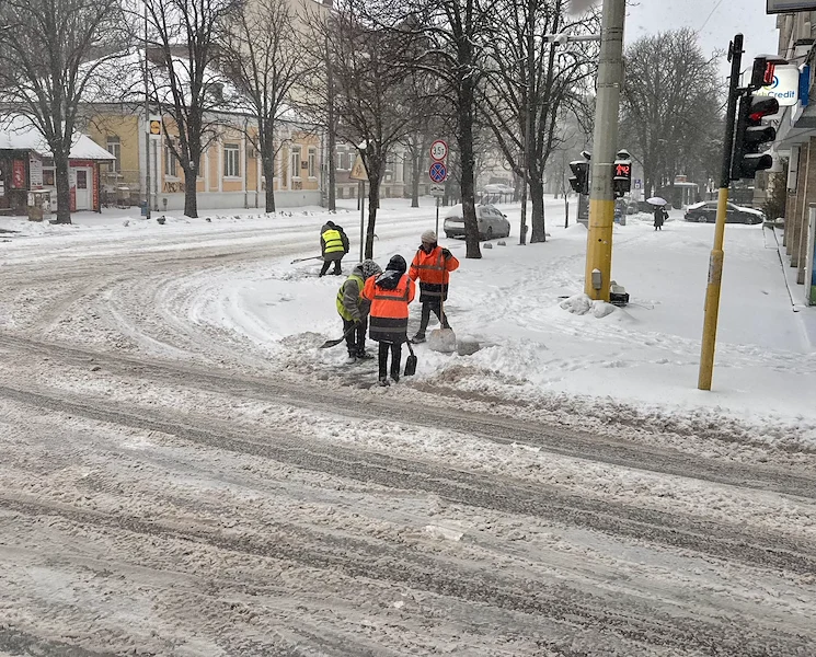 Десет сантиметра снежна покривка и силен североизточен вятър се оказаха достатъчни, за да объркат сериозно разписанието на обществения транспорт в Русе сутринта на 21 февруари. Местната администрация отчита координирани действия и работа на над 30 снегопочистващи машини. Според официалното съобщение на Община Русе, пътната мрежа в града и региона се поддържа проходима. За целта са мобилизирани 15 машини на консорциум "Еко Русе Груп", подпомагани от 55 работници за ръчно третиране на тротоарите. В малките населени места фирма "Берус" оперира с 9 снегорина, а "Пътинженеринг" обработва входно-изходните артерии с 4 машини. Предприятието "Паркстрой" също е на терен с наличния си състав.