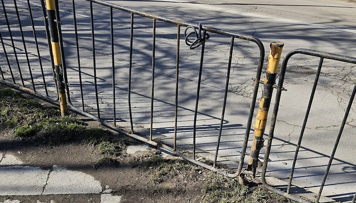 Предпазната ограда по протежението на булевард „Съединение“ в Русе се намира в критично състояние, сигнализират възмутени граждани. Металните колчета, които трябва да осигуряват безопасността на пешеходците и да предотвратяват неправилно пресичане, са напълно изгнили в основата си, въпреки че за проблема е подаден официален сигнал още преди година.