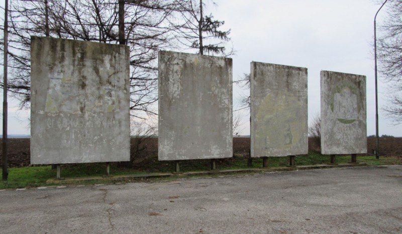 Ясно е само едно от изображенията, и то е на Пантеона на възрожденците. По запазени архивни кадри от 2010 г. се вижда, че другото изображение на крайното ляво пано е било на крепостта Червен. Явно идеята е била пристигащите пасажери да бъдат посрещнати с изображенията на 4-те най-важни културно-исторически обекта в района на Русенска област.
