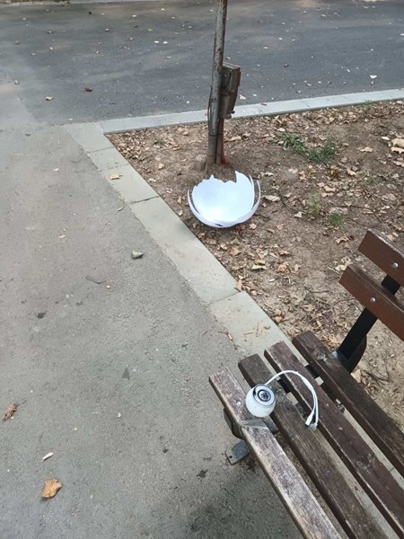 Брутална вандалска проява е била извършена тази нощ по алея Перистери в Парка на младежта, съобщават от Общината. Въпреки посегателството срещу две камери на общинското видеонаблюдение, извършителят на деянието е заснет.