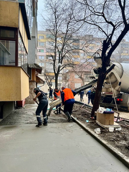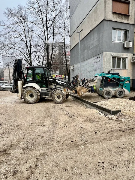 В квартал "Родина" 1 продължава благоустройството между блоковете "Голям Богдан", "Малък Богдан" и "Верила", като се полагат бетонови тротоари и е изградено осветление за паркинга.