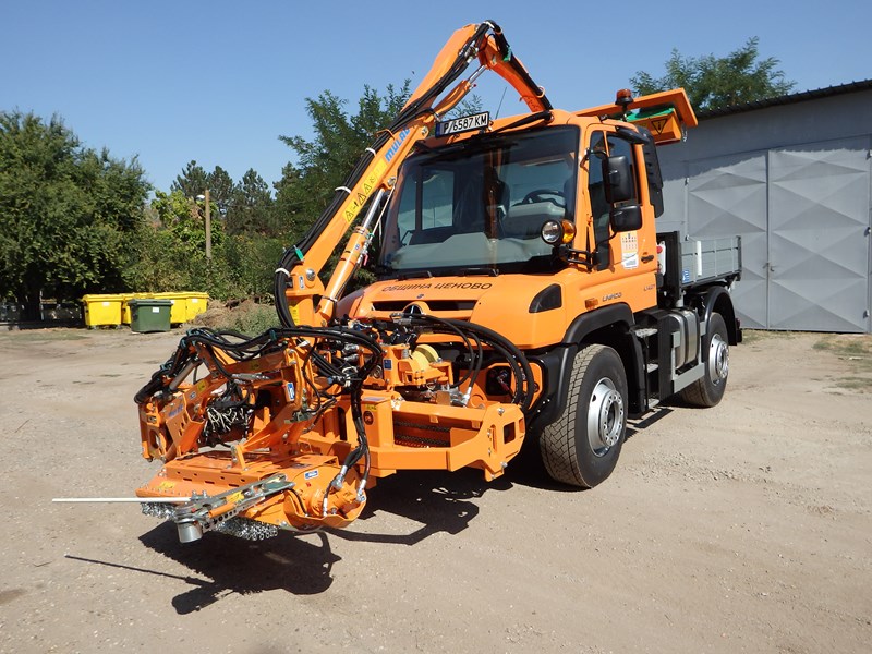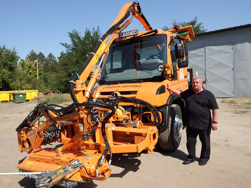 Камионът е снабден с косачка за трева на крайпътните пространства. Сервитутите ще се освобождават от изсъхнали и надвиснали клони на дървета и храсти с помощта на чупеща се храсторезна глава.