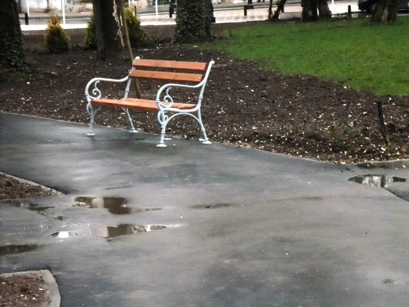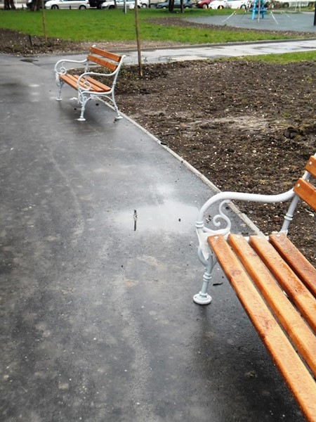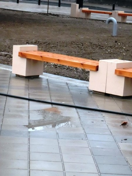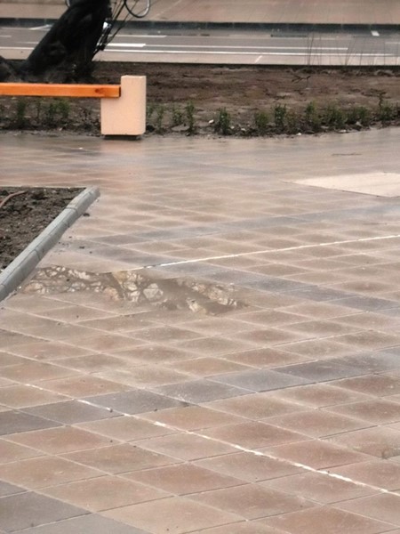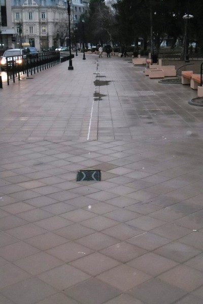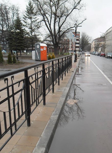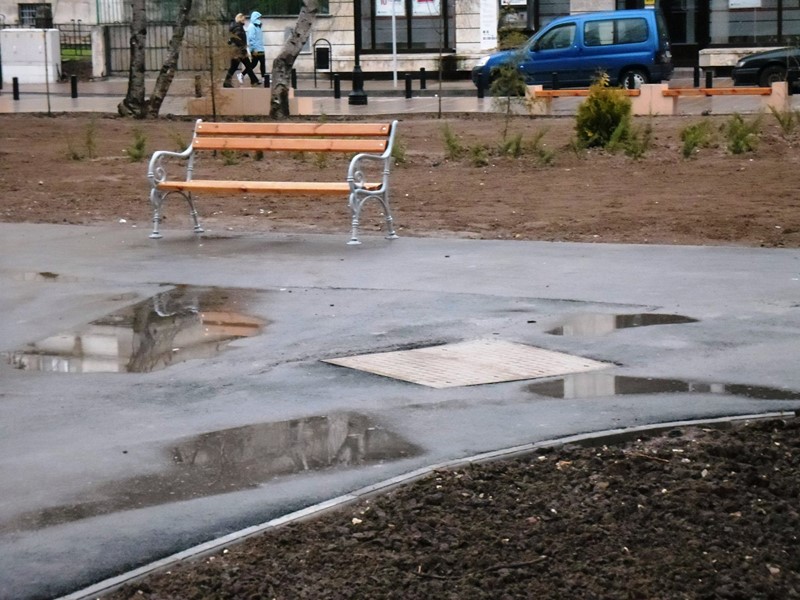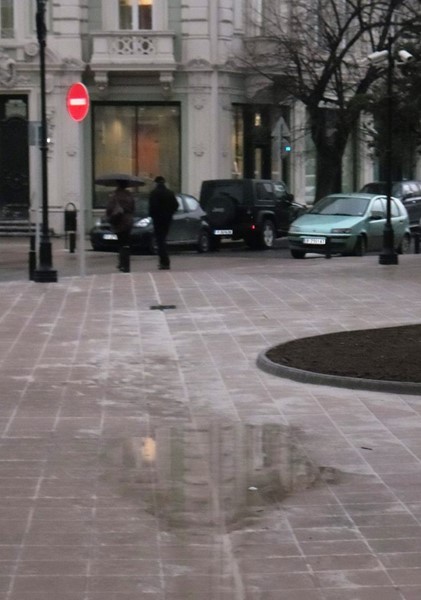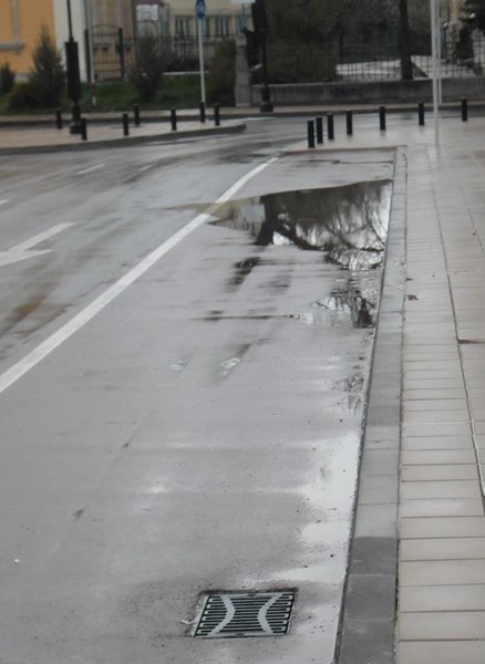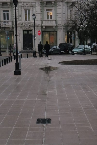"Още първият дъжд над прехваления "реновиран" площад "Батенберг" показа, че повече от 1,5 млн. лева на русенските данъкоплатци (общинско плащане по проекта) са отишли на вятъра. Изглежда общината ги е дала на някакви хора, които сега се учат на занаят... След първия дъжд върху новата настилка се появиха повече от 30 локви, които нямат връзка с отводните шахти и русенци ще шляпат из тях докато пресъхнат от слънцето. Кмете, стига си се самохвалил, ами кажи защо харчиш парите ни за несвършена работа?"