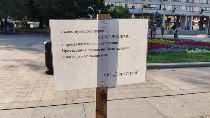 За първи път в Русе, макар и само на едно място засега, е поставена информационна табела във връзка с проведена дейност на ОП „Паркстрой“. Става дума за премахване в централна градска част на изсъхнало дърво. Заради местоположението му е било решено хората да бъдат информирани чрез кратък текст, който пояснява причините за изсичането, какво е премахнатото дърво и най-вече какви са последващите намерения и какво ще бъде засадено отново на това място, информира Русе Медиа.