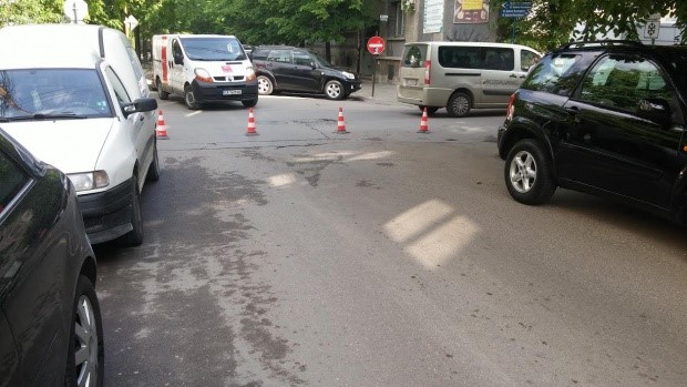 Продължават неволите за русенските шофьори. Общински служители пак правят ремонти и запълват дупки по улиците без да сигнализират за това.