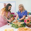 В УМБАЛ „Медика“ старшата акушерка Евгения Йорданова поля ръцете на лекаря с най-дълъг стаж в отделението - д-р Стела Минчева.