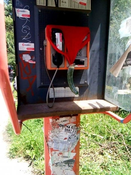 В коментарите пък се появи и подобен фотос, но с червено бельо, обуто на уличен телефон.