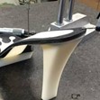 За разлика от традиционните високи обувки, в основата на които са метална пластина под ходилото и здрава ос за токче, революционният модел Thesis Couture е произведен от високотехнологична пластмаса и полимери.