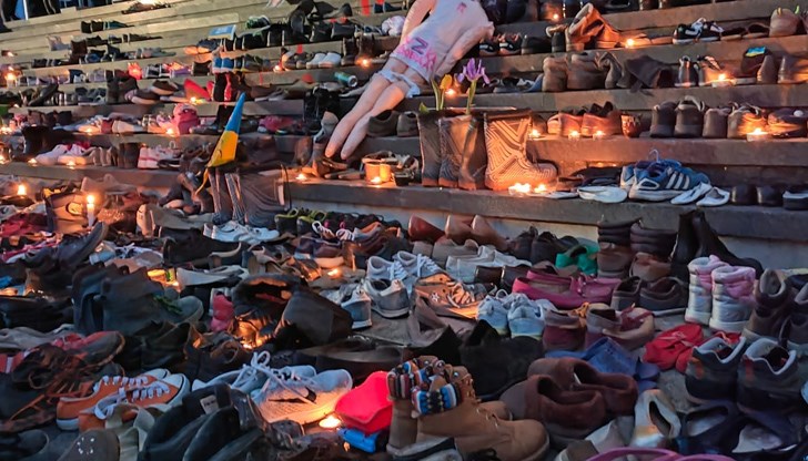 Обувки в памет на загиналите в Буча бяха поставени пред Руския културно-информационен център