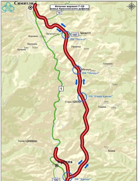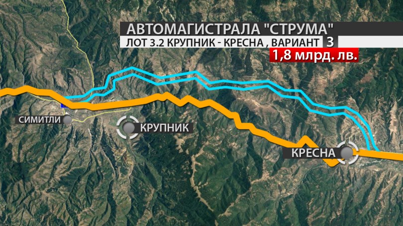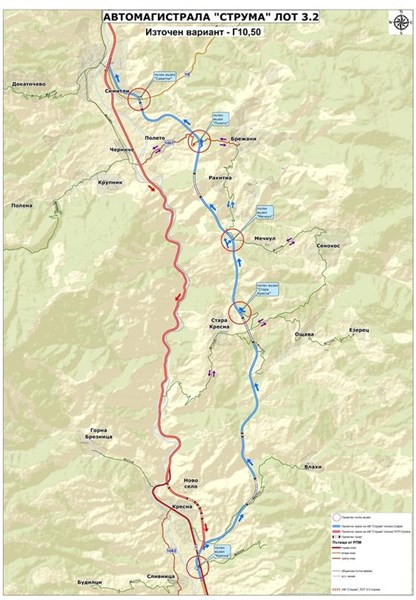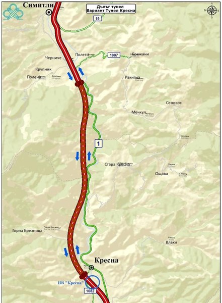 Петте варианта за АМ "Струма" в Кресненското дефиле обявиха АПИ и МРРБ преди обществените обсъждания с жителите на Кресна и Симитли на 11 септември.