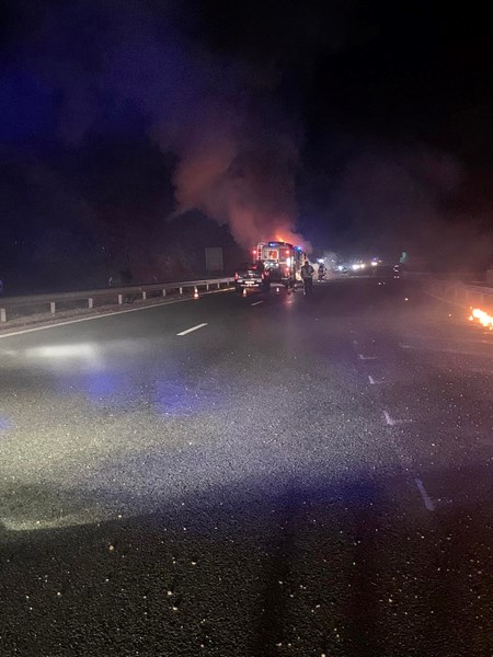 Очевидци публикуваха снимки на горящия автобус на АМ "Струма"