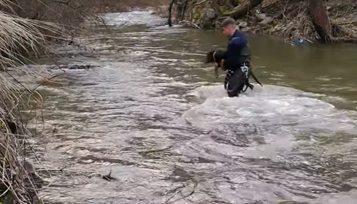 Екип на Районната служба "Пожарна безопасност и защита на населението" (РСПБЗН) – Девин проведе успешна, но рискована акция за спасяването на ловно куче, паднало в коритото на река Широколъшка. Инцидентът, който завърши с щастлив край вчера, 11 февруари, разкрива както професионализма на огнеборците, така и опасностите на планинския терен в Родопите.Според информация на Ловно-рибарско дружество „Девин“, сигналът за бедстващото животно е подаден след като то е било в неизвестност в продължение на няколко дни. Кучето е попаднало в капан по време на лов, докато е преследвало дивеч.