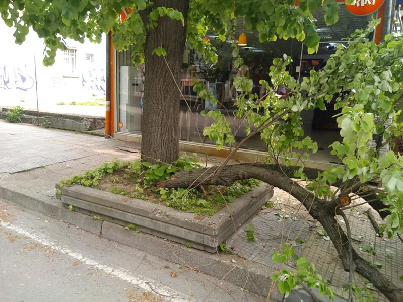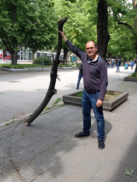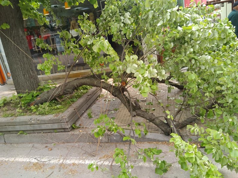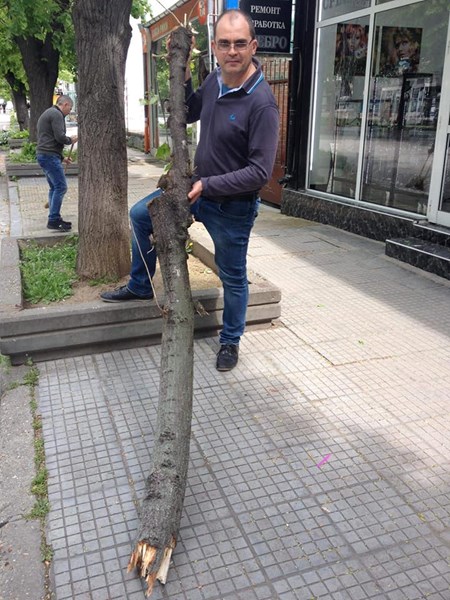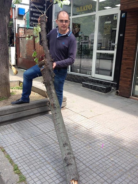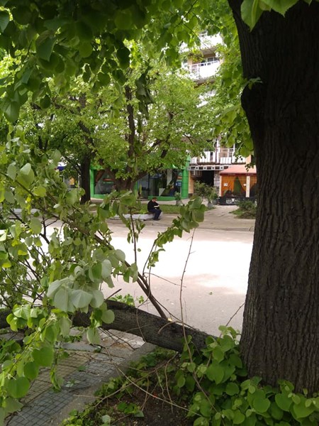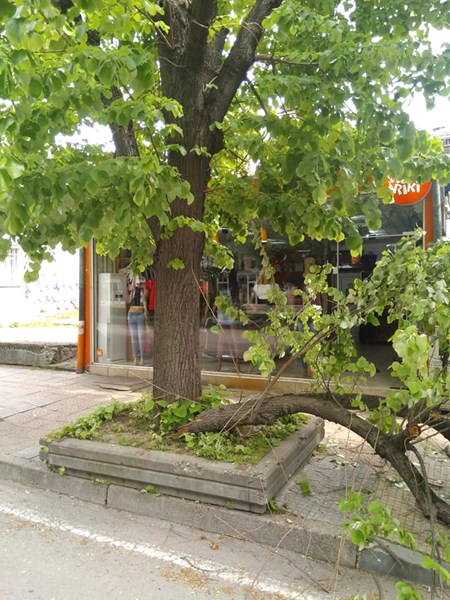 Току що на метри от мен, на главната улица "Александровска", падна този голям масивен клон, който наетите от общинска администрация на най-добрия град за живеене в духа на политиката на видими резултати не са отрязали!