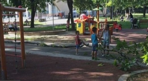 Видин се размина на косъм от трагедия, след като огромен клон се стовари върху детска площадка с множество играещи деца.