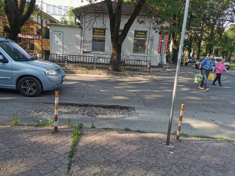 Особено обезпокоителна е ситуацията на кръстовището при Кооперативния пазар, където пропадането на асфалта създава реална опасност за автомобилите. Шофьорите са принудени да маневрират между дупките, а пешеходците пресичат с повишено внимание, за да не се озоват в голямата пропаст.