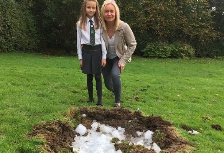 Жителите на шотландското село Басби в окръг Ийст-Ренфуршир бяха шокирани, когато сутринта на 26 септември върху селото им се изсипал огромен блок от лед и направил масивен кратер в селски двор, пише esoreiter, цитиран от БЛИЦ.