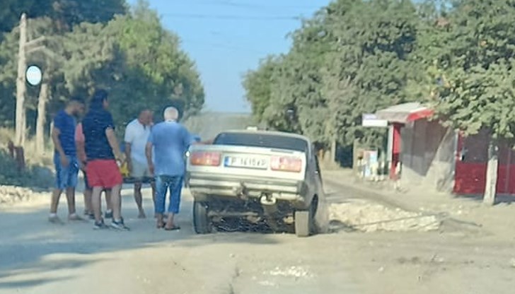 За това сигнализират очевидци на поредния инцидент на влизане в селото. Любослав Лефтеров е постнал снимка на потънала до половината кола, а собственикът се чуди как да я издърпа от дупката.
