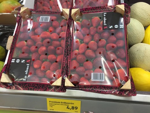 Снимки, които се въртят в онлайн пространството показват огромната разлика в цената на ягодите в България и Германия.