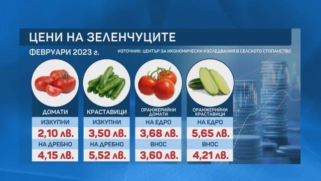 В една оранжерия краставиците и доматите излизат на 4 лева за килограм. Собственикът ѝ Тони Йорданов казва, че няма как продукцията да падне под тази цена. За да я пласира и в момента я продава под себестойността ѝ.
