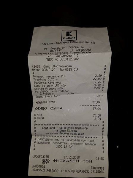 Пакетче, за КОЕТО ИМАХ КАСОВ БОН!!! На касата, след като заплатих покупките си, бях спрян от други двама, абсолютно неадекватни като поведение и реакции служители - момче и жена. Впоследствие, жената се скри и не даде сведения пред полицията, а бе длъжна да го направи! Тези двама души, които нито веднъж не отвърнаха на апела ми да се легитимират, директно ме нападнаха с абсурдното изречение: "Обвинен сте в кражба на батерии"!", пише още Лазаров.