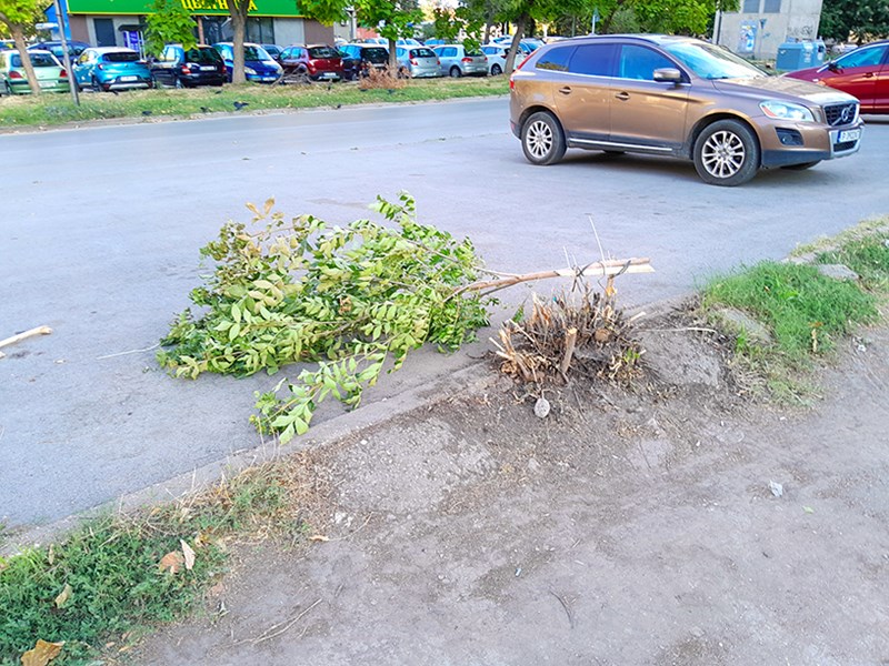 На 1 август 2024 година, изпратих сигнал 94А-1512-2 относно брутално счупено дърво на паркинга срещу болница „Медика“ в ж.к. „Изток“. За съжаление, на 4 август сутринта открих, че дървото отново е варварски строшено, след като бяха срязани пластмасовите опашки, с които го бях вързал. Вероятно новият акт на вандализъм е свързан с почистването на клоните под него, извършено на 2 август. Листата на дървото вече започнаха да изсъхват.