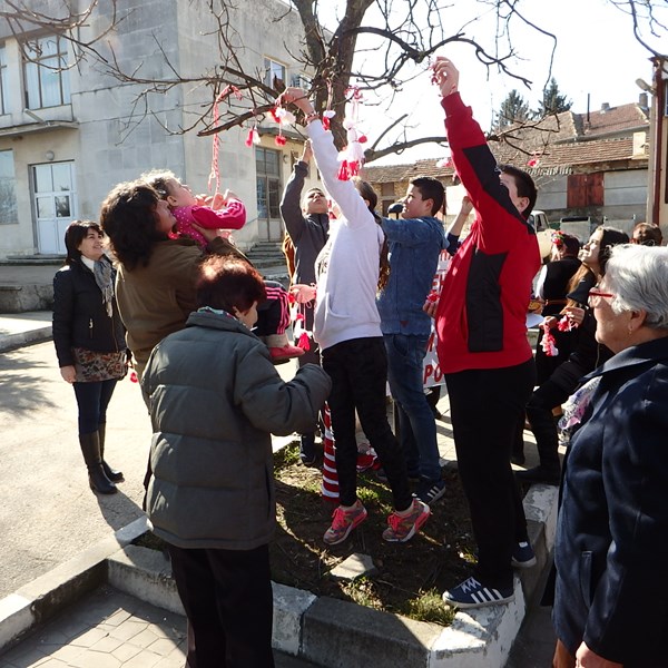 Млади и стари закичиха с мартеници дървото на сполуката в центъра на Ценово.