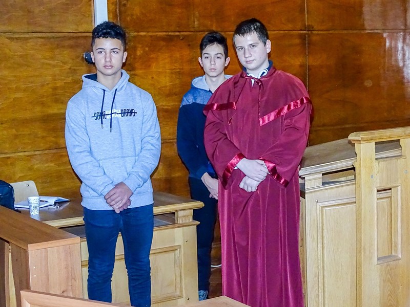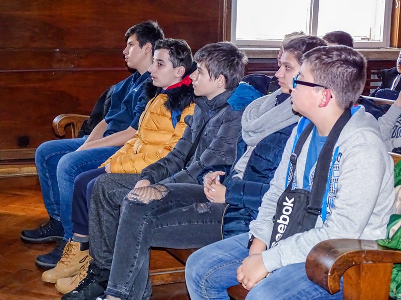 В началото съдията запозна младежите с реда, който следва да спазват както страните, така и всички присъстващи в съдебната зала. Пред учениците беше показано и ситуирането на всеки един участник в съдебния процес. Разяснени бяха различните състави на съда при различните видове дела и функциите на съдебните заседатели. Съдия Черкезова запозна учениците със статута на магистратите и представи работата на професиите съдия и прокурор. Разказа им и за т.нар. „сини стаи“, в които се провеждат разпитите на децата с цел да се защитят правата им.