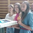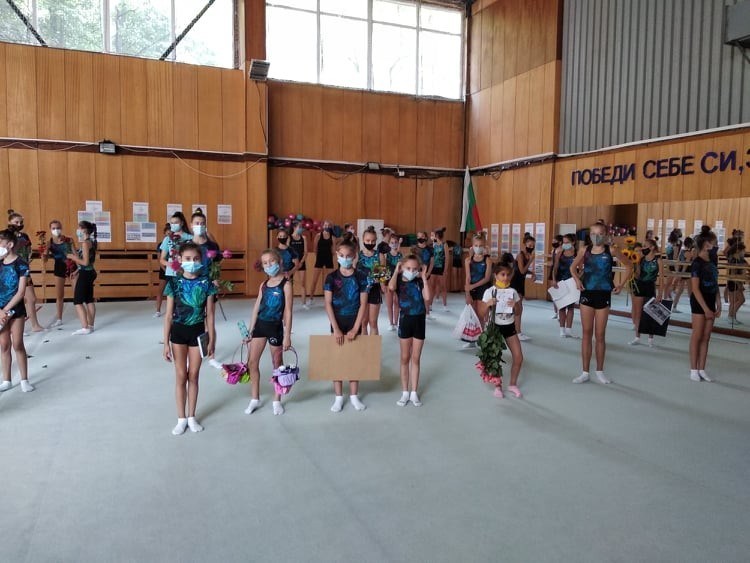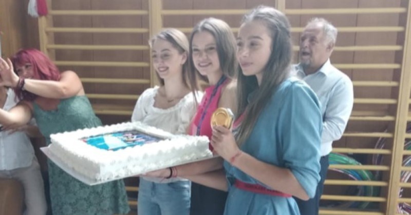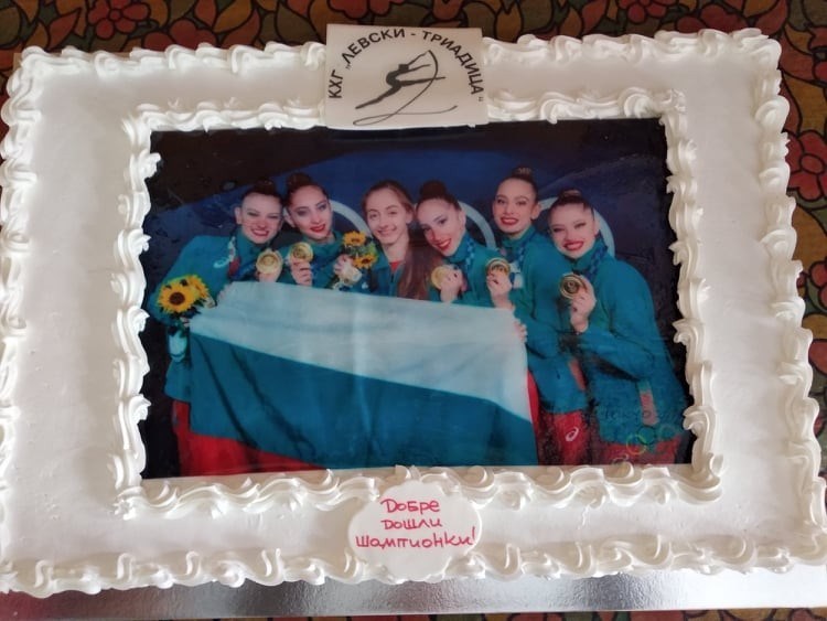 С огромна торта, шампанско и с много цветя гимнастичките и треньорите от клуб "Левски Триадица" посрещнаха днес своите олимпийски шампионки от ансамбъла Мадлен Радуканова и Лаура Траатс, както и на Боряна Калейн, която се нареди на престижното пето място в индивидуалния многобой на олимпийските игри в Токио.