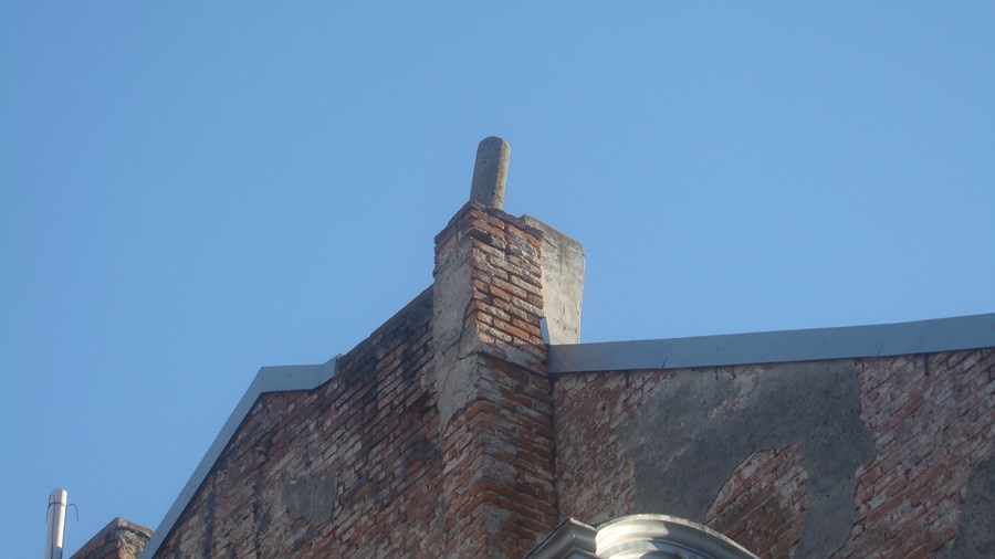 Опасен комин застрашава пешеходците на централната улица в град Русе.