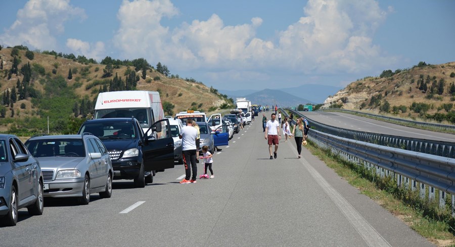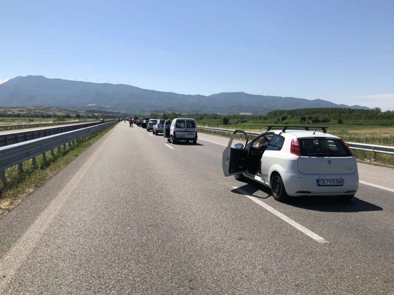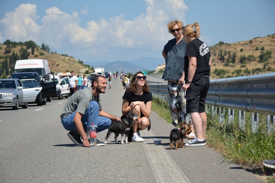 Заради спрелия трафик основно в активната лента на АМ „Струма” бяха спрени стотици леки автомобили, в аварийната се движеха само ТИР-ове. Така в свободната изпреварваща лента се разхождаха кучета, караха се скейтбордове и ролери, риташе се топка. Опашката тръгна в 12.30 ч., но по това време бе достигнала до с. Марикостиново, или над 5 км.