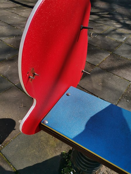 "Стърчащи пирони и болтове от съоръженията! Намира се в междублоковото пространство на блок "Сирма войвода" в кв. "Здравец-Изток". Подаден е сигнал по имейл до кмета на Общината, но явно подадените сигнали тук се обработват по-бързо!", пише г-жа Димитрова във фейсбук групата "Писмо до кмета на Русе"