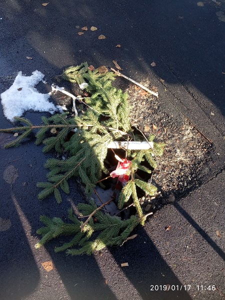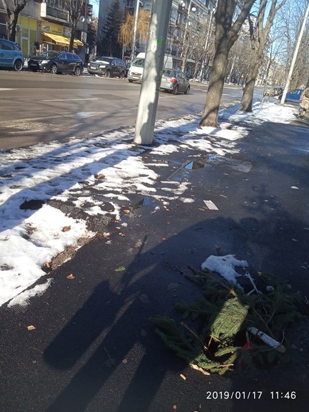 Този кадър заснех днес по улица "Борисова" - дупка, която е доста дълбока и сложени клончета да се закрие, за да не се убие някой.